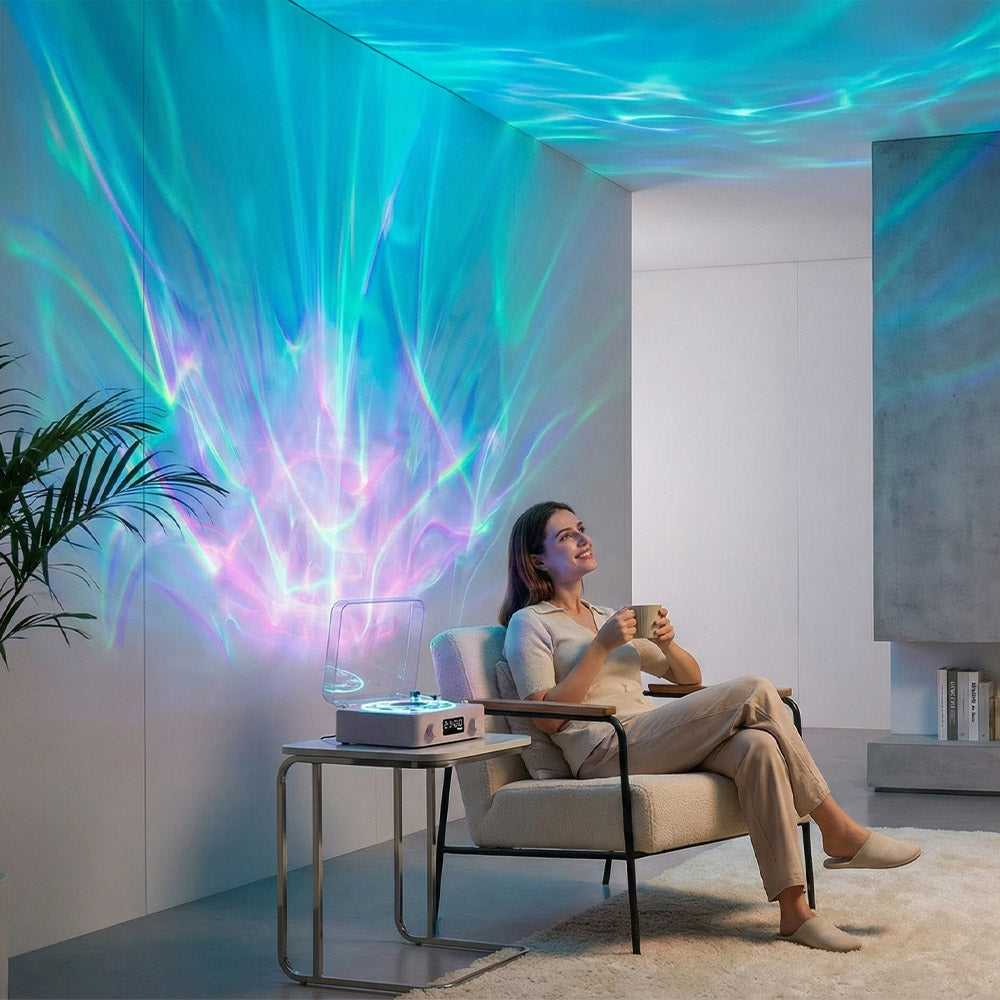 Lumi Retro to stylowy głośnik bluetooth z projektorem świetlnym. Tworzy kolorowe fale światła na ścianie i wprowadza wyjątkowy klimat w każdym wnętrzu. Idealny do relaksu i wieczornego odpoczynku. ✨🎶